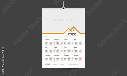 orange colored 12 month 2022 calendar design