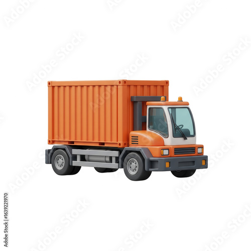 Orange Delivery Truck With Container Isolated On Transparent Background 3d Rendering