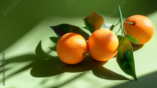 Orange, fresh oranges on isolated green background, organic diet food, healthy natural fruit.