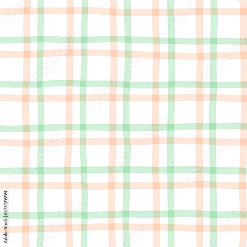 Orange Green Plaid Gingham Check Hand Drawn Background Overlay