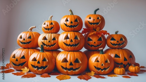 Orange Halloween pumpkins separated on a white background
