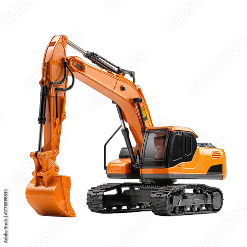 Orange heavy-duty excavator, front view