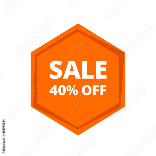 Orange Hexagon Sale 40% Off Discount Sticker Graphic Element for Retail Promotions