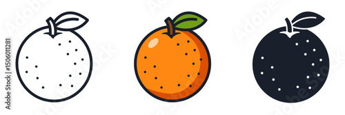 Orange Icon Vector Symbol. Citrus Fruit Minimalist Design Isolated on White Background