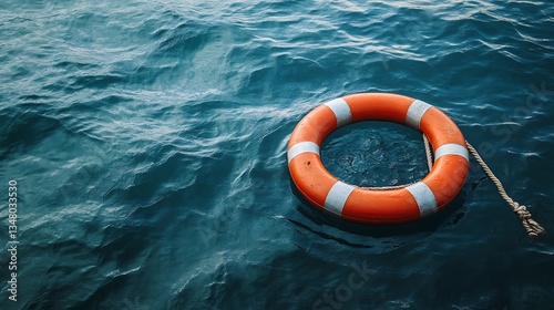 Orange Lifebuoy Floating on Dark Blue Water