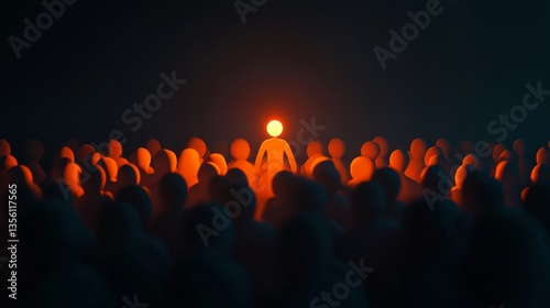 Orange Light Person Standing Out Among Crowd in Dark Background