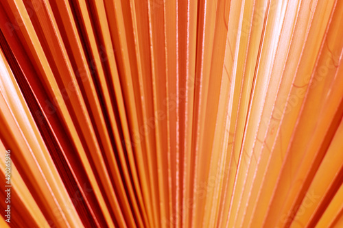 Orange natural lines palm tree leave close up, lush lava colors background