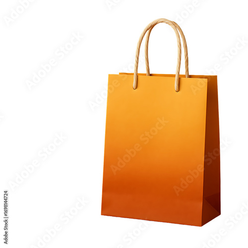 Orange paper bag on a transparent background. Shopping. Gift packaging. Business.