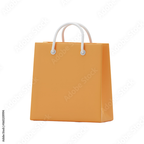 Orange Paper Shopping Bag with White Handles 3D Rendering