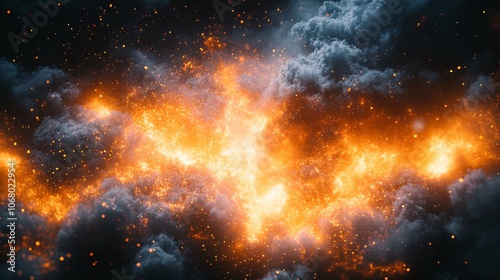 Orange Plasma Explosion in Scattering Clouds