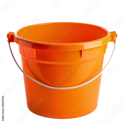 Orange plastic bucket isolated on transparent background. Domestic household or housework equipment object, housekeeping hygiene service