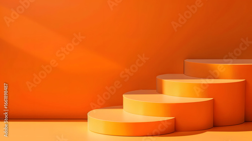 orange podium on background. Conceptual banner for holidays. Pedestal for displaying good.