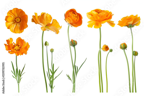 Orange Ranunculus Flowers Botanical Collection White Background