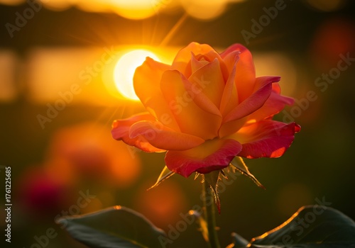 Orange Rose Illuminated by Golden Sunset Sunlight. Generative Ai