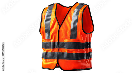 Orange safety vest, 3D rendering, cartoon plastic style icon, isolated on white background