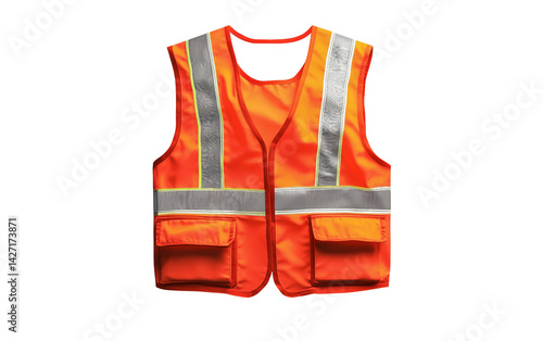 Orange safety vest with reflective silver stripes designed for visibility and protection isolated on white background PNG