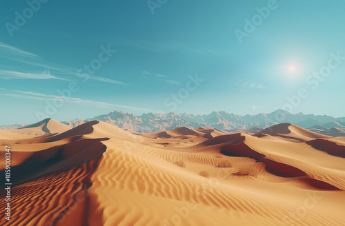 Orange Sand Dunes Under a Clear Blue Sky in the Sahara Desert