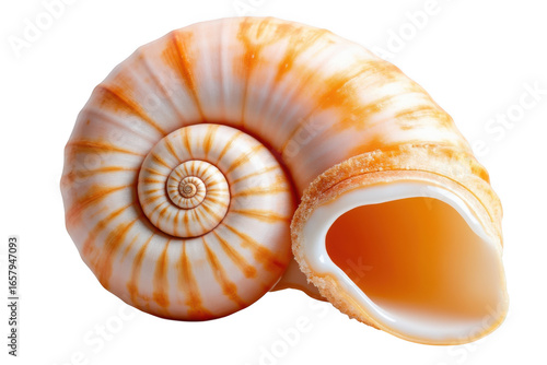 Orange seashell spiral isolated on transparent background
