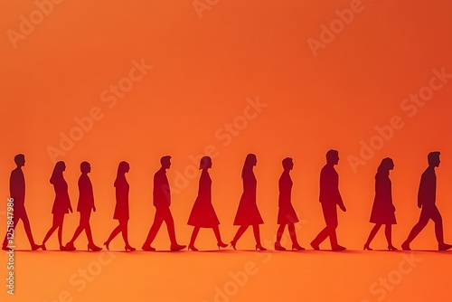 Orange Silhouette People Walking Forward Teamwork
