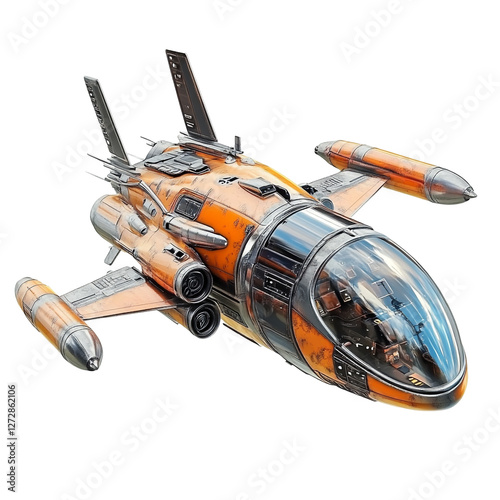 Orange spaceship design futuristic aircraft interstellar travel exploration,