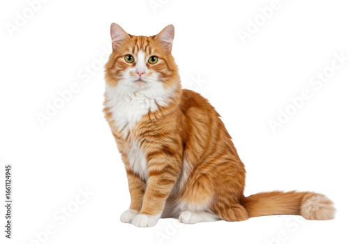 Orange tabby cat sitting and looking at the camera isolated on transparent background