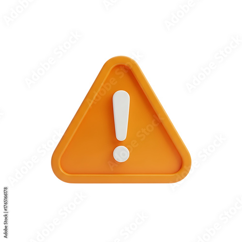 Orange warning triangle symbol with white exclamation mark isolated on transparent background