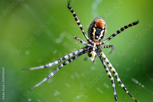 Orb weaver spider in a web in Cotacachi, Ecuador