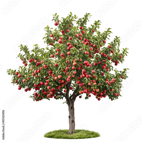 Orchard Tree with Ripe Red Apples Isolated on Transparent Background