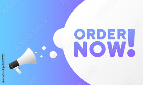 Order now sign. Flat, purple, text from a megaphone, order now sign. Vector icon