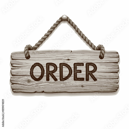 ORDER rustic wooden hanging sign for cafés, craft shops, and handmade marketplace interfaces