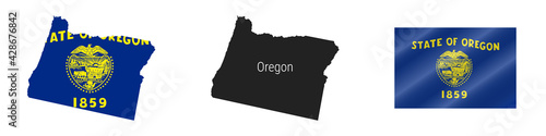 Oregon US state detailed flag map. Detailed silhouette. Waving flag. Vector illustration