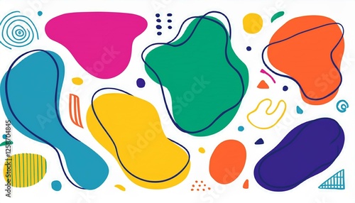 Organic abstract shape color set. Abstract texture brush stroke kid elements. Organic blob grunge paint texture background. Wave, circle blob, triangle contemporary color shape. perfect any project.