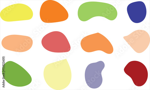 Organic amoeba blob shape abstract green color with line vector illustration isolated on white background. Set of irregular round blot form graphic element. Doodle drops with outline circle. EPS 10