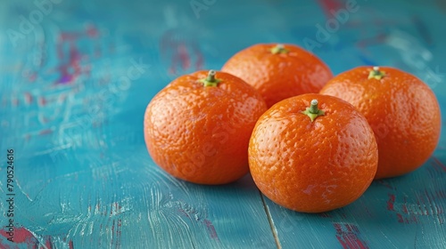Organic Baby Santang or Mandarin Oranges from a Side View placed on a blue wooden surface known for their exceptional sweetness and juiciness