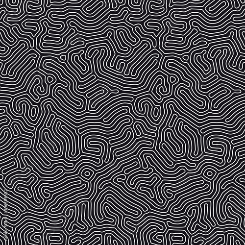 Organic background with rounded lines. Diffusion reaction seamless pattern. Linear design with biological shapes. Abstract vector illustration in black and white.