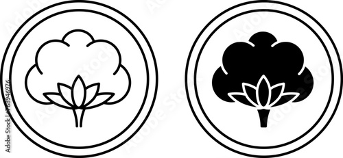 Organic Cotton icons. 100% Natural Cotton, Natural Fabric, Organic Textile. Vector Round Badge, Sticker, Logo, Stamp, Tag. Cotton Flower