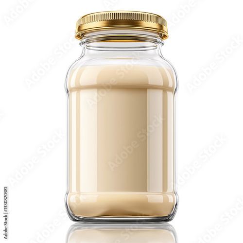 Organic Dairy Milk in Glass Jar with Golden Cap - Fresh and Natural Healthy Drink for Home Cooking
