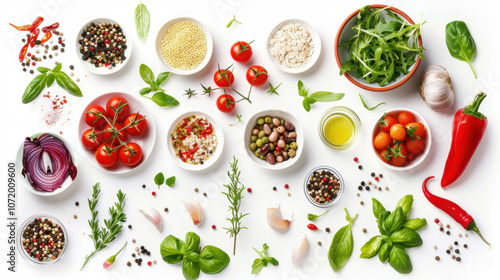 Organic Fresh ingredients Natural Vegan Healthy Main ingredients Healthy recipes isolated white background