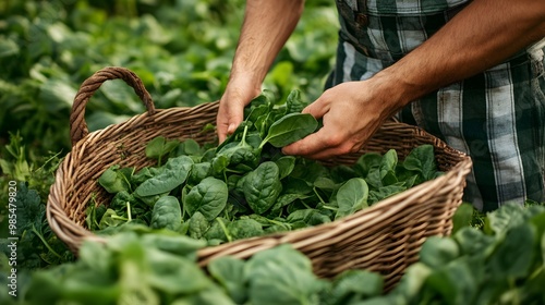 Organic Gardener Harvesting Fresh Greens in Lush Vegetable Patch