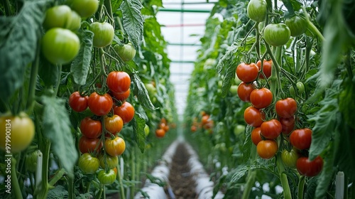 Organic greenhouse tomato production encompasses the maturation process of the fruit, utilizing sustainable techniques.