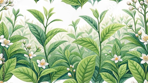 Organic Labor Day Tea Leaf Garden Background Texture: Lush Green Hills, Rolling Landscape, Authentic Harvest