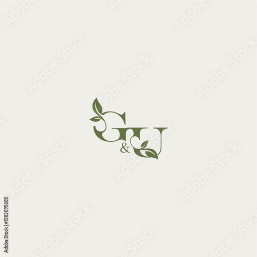 organic leaf logo bold initial concept letter luxury wedding monogram design GU