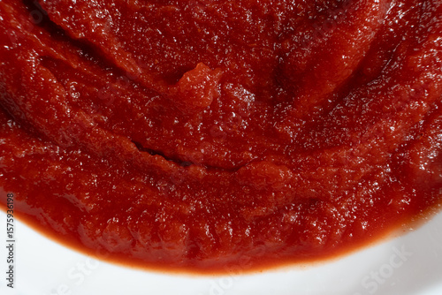 Organic Tomato Paste Close-Up. Smooth Red Spread for Cooking.