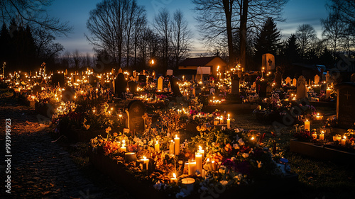Organize a respectful evening vigil where families can gather at a local cemetery to honor their loved ones. Participants can light candles, bring offerings, and decorate graves. Ai generated