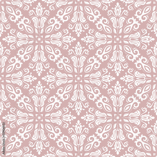 Orient classic pattern. Seamless abstract pink and white background with vintage elements. Orient background. Ornament for wallpaper and packaging