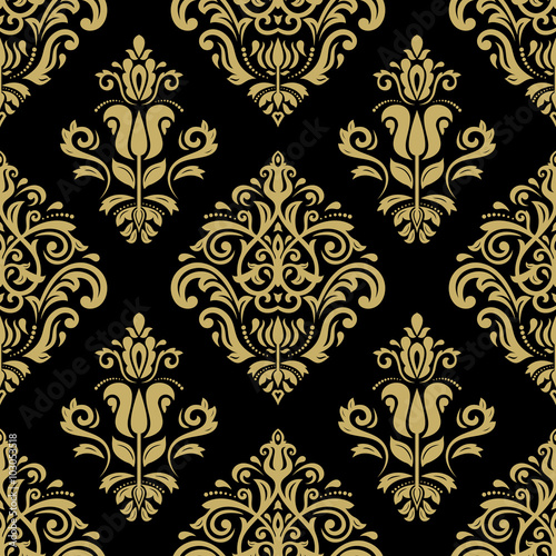 Oriental classic black and golden ornament. Seamless abstract pattern