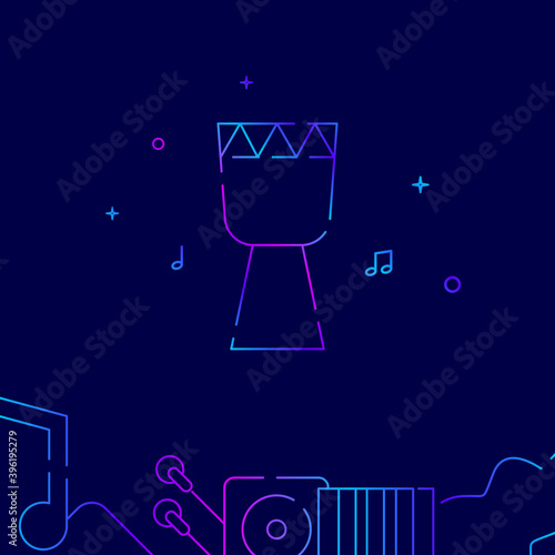 Oriental drum gradient line vector icon, simple illustration on a dark blue background, music related bottom border.