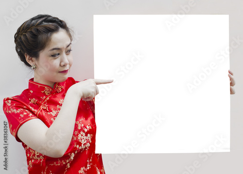 Oriental girl wishing you a happy chinese new year, with copy sp