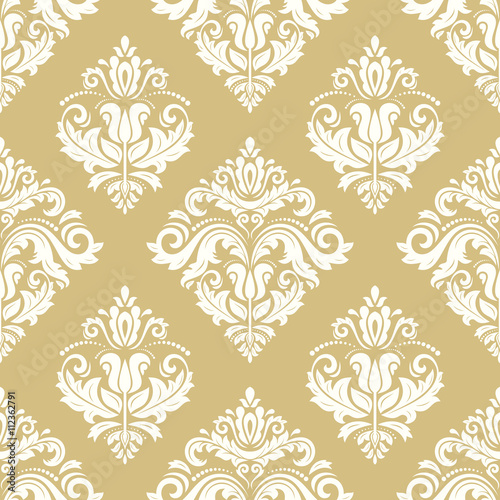 Oriental vector classic yellow and white pattern. Seamless abstract background with repeating elements