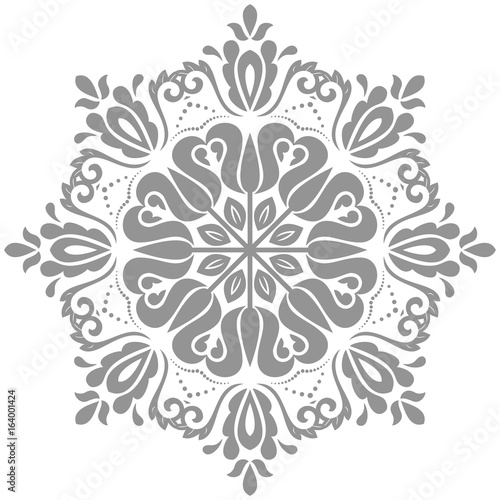 Oriental vector pattern with arabesques and floral elements. Traditional classic round silver ornament. Vintage pattern with arabesques